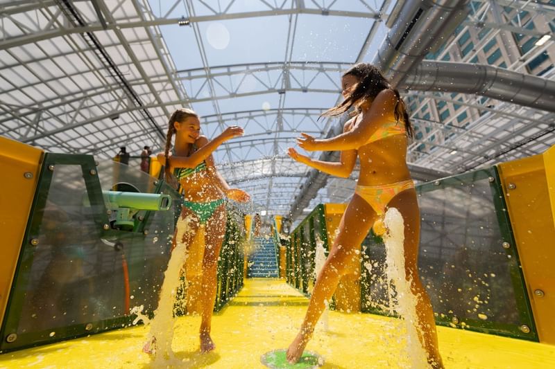 Escape, relax, and indulge in the Paradise Island oasis, exclusively available for ages 21 and above. Dive into the Bliss Pool by the retractable glass doors that invite in the summer breeze. Explore two dry bars and multiple TV screens for ultimate relaxation and entertainment. Paradise Island offers a retreat for adults to enjoy, with entrance available as an add-on experience to the park for an additional charge.
